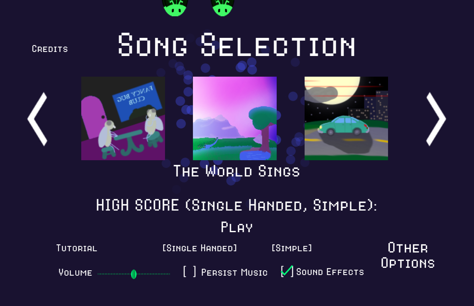 + Added a "Color Options" menu to the Preferences menu. Change the color of Beat Bugs, as well as set a static color for the background and lines during gameplay. A toggle to feature Button Slats is also in this menu to help with seeing the buttons better during gameplay.
